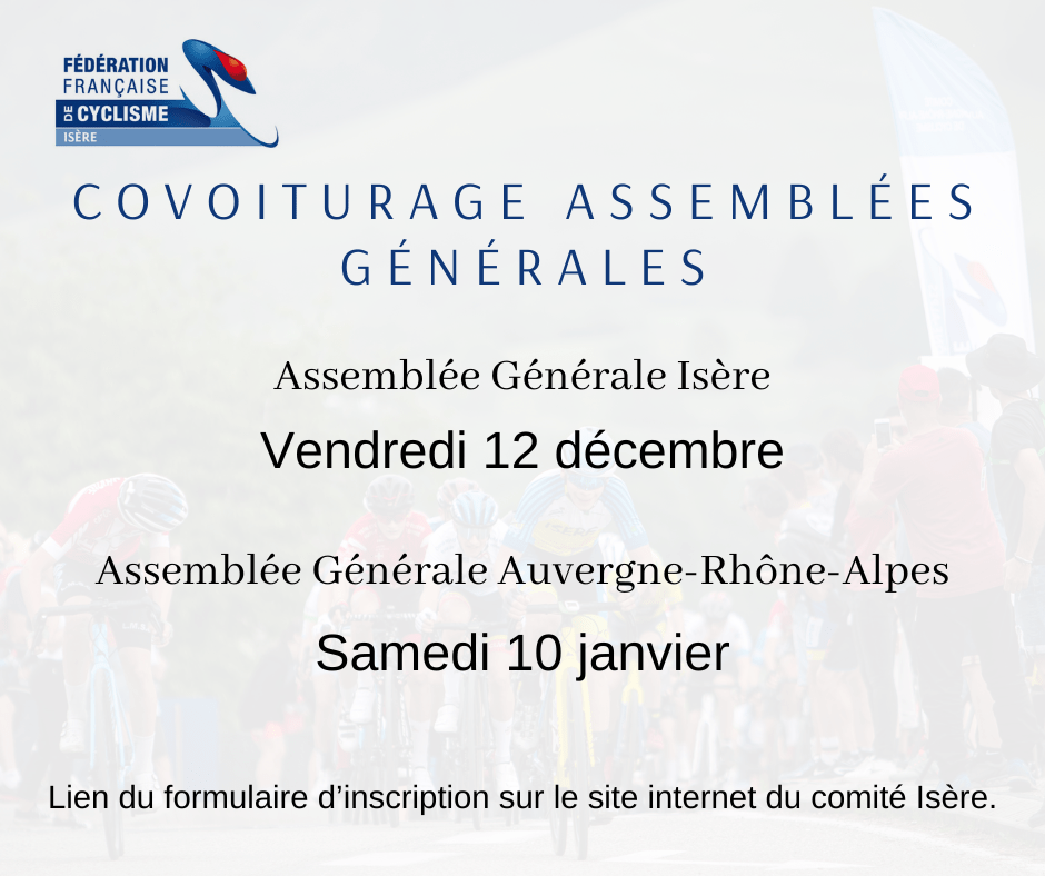 Afin de réduire les frais de déplacement liés à l’Assemblée générale du comité Isère et à celle du comité Auvergne–Rhône-Alpes, nous vous proposons d’organiser un covoiturage.